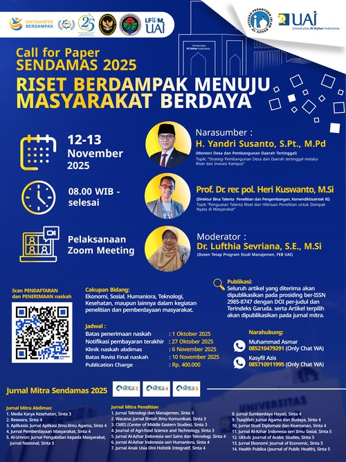 Aprilia Tri Purwandari, Universitas Al-Azhar Indonesia Octarina Nur Samijayani, Universitas Al-Azhar Indonesia Bambang Eko Samiono, Universitas Al-Azhar Indonesia Tasya Amalda Ramadhina, Universitas Al-Azhar Indonesia Ahmad Fadillah, Universitas Al-Azhar Indonesia Iksan Wahyudi, Universitas Al-Azhar Indonesia |